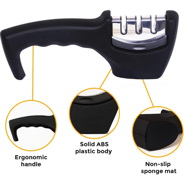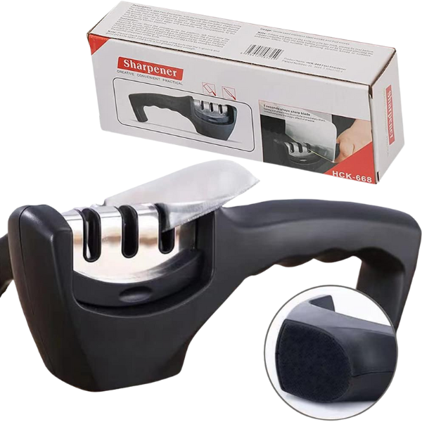 Mango antideslizante para un agarre firme y seguro durante el afilado. -