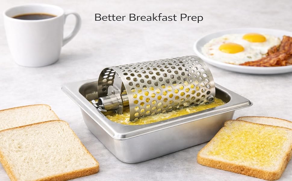 El azafate mantequillero es una herramienta esencial en panaderías, reposterías, cocinas industriales y negocios de alimentos que requieren procesar mantequilla de forma rápida, uniforme y eficiente. Su diseño con tambor perforado giratorio permite ablandar, airear o “rayar” la mantequilla para facilitar su mezcla o incorporación en masas y recetas.