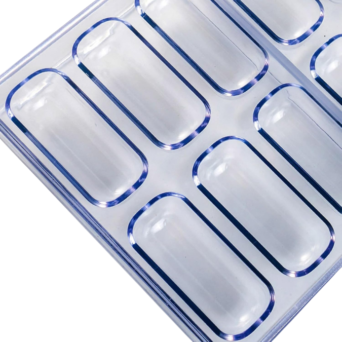 Diseño: Cavidades alargadas estilo barra, con esquinas redondeadas.