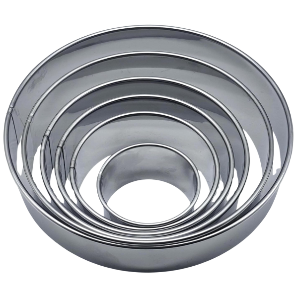 Juego de cortadores redondos de acero inoxidable en diferentes tamaños, perfectos para cortar masa de galletas, fondant, pastas, frutas, sándwiches, queso, pan y más. Su diseño clásico y funcional permite obtener círculos perfectos en cuestión de segundos.