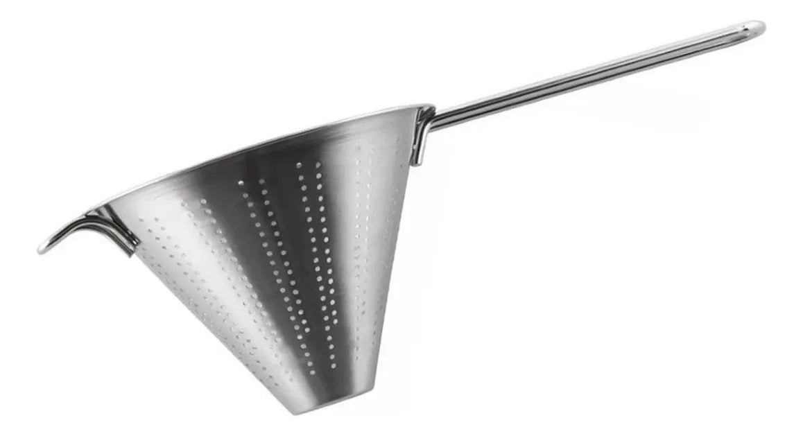 El colador chino es una herramienta indispensable en cualquier cocina profesional o doméstica. Gracias a su forma cónica y perforaciones finas, permite colar, filtrar y refinar preparaciones con gran precisión. Fabricado en acero inoxidable, ofrece durabilidad, higiene y un rendimiento superior en todo tipo de recetas.